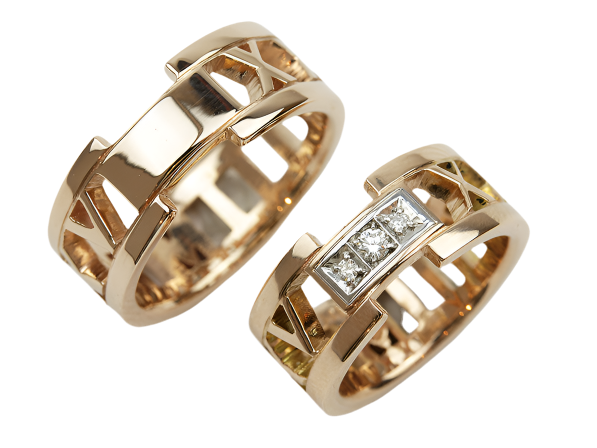 Diese individuellen Trauringe wurden aus massivem 585/- Rotgold gefertigt. Römische Ziffern des Tages der Hochzeit ziehen sich wie ein Band um den Finger. Das ganz Besondere daran ist, diese Trauringe wird es kein zweites Mal geben, da sich dieser Tag nicht wiederholt.